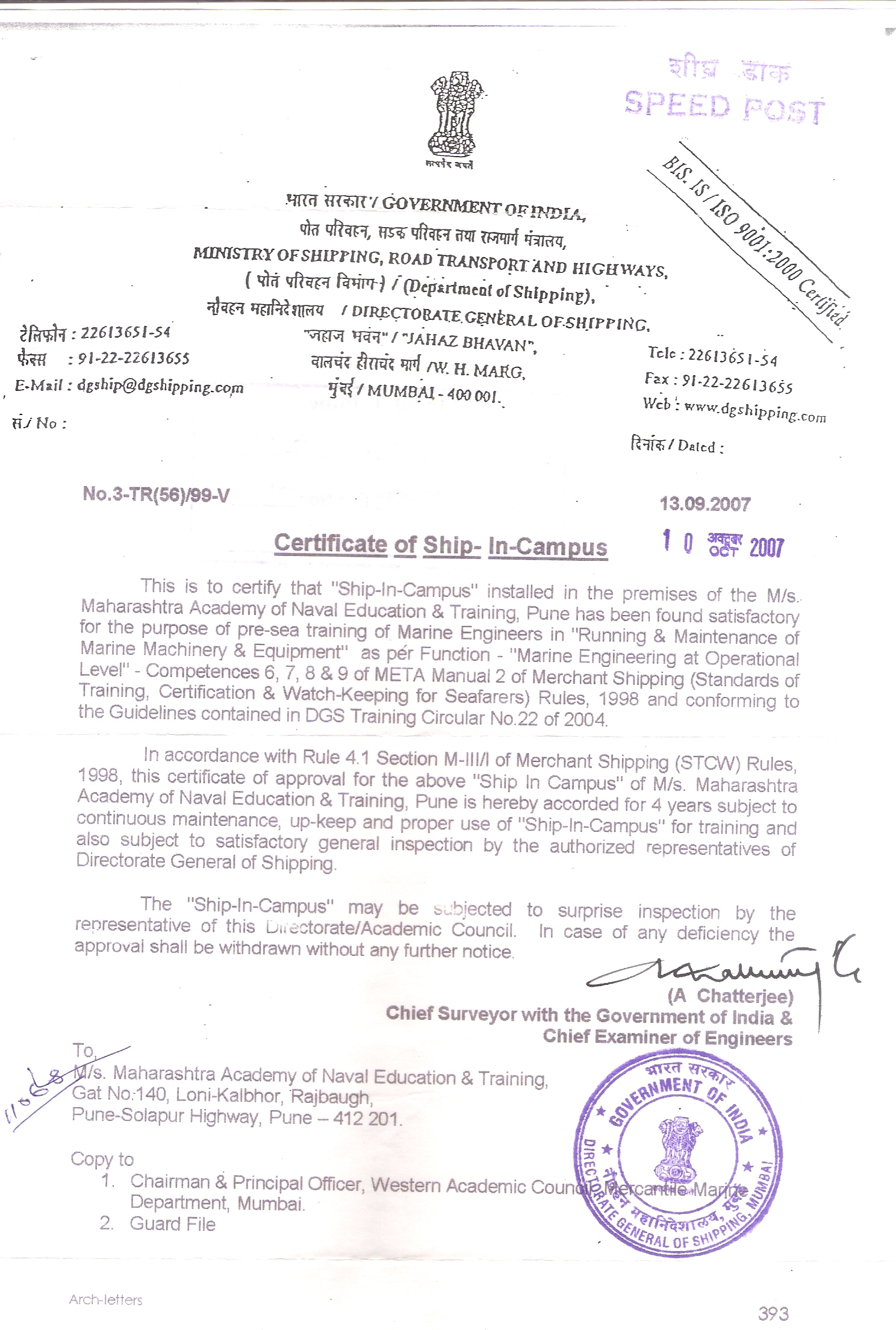 4. Ship-in-Campus Accreditation from “Directorate General of Shipping: Govt of India“.